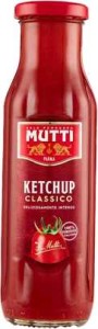 Ketchup Mutti jest wytwarzany wyłącznie z włoskich pomidorów. Do uzyskania 1 kg ketchupu wykorzystano 2,2 kg świeżych i soczystych pomidorów. Mutti Ketchup wyróżnia się lekko pikantnym smakiem. Nie zawiera konserwantów.