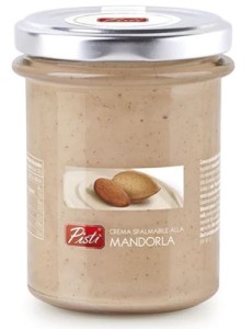 Składniki: Migdały 45%, cukier, mleko w proszku, oliwa z oliwek z pierwszego tłoczenia, nieutwardzone tłuszcze roślinne(olej słonecznikowy, masło kakaowe), emulgatory: lecytyna sojowa.